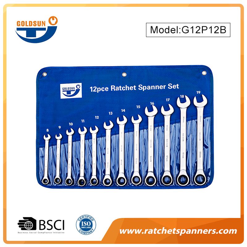 Kan användas på många ställen, till exempel cykel, garage, hemma DIY, maskinunderhåll och så vidare. Goldsun märket mekanik spärrnyckel set packad i en canvas roller är designad i box-end och öppen ände.